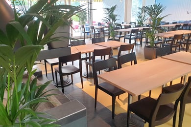 Das bxa-Restaurant timeOut mit Cheminée und behaglicher Atmosphäre.